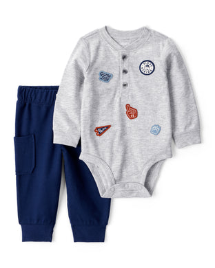 2-Piece Legend Short-Sleeve Waffle Knit Bodysuit & Pant Set - Grey