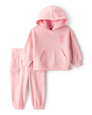 Bow Long-Sleeve Top & Tulle Skirt Set - Pink
