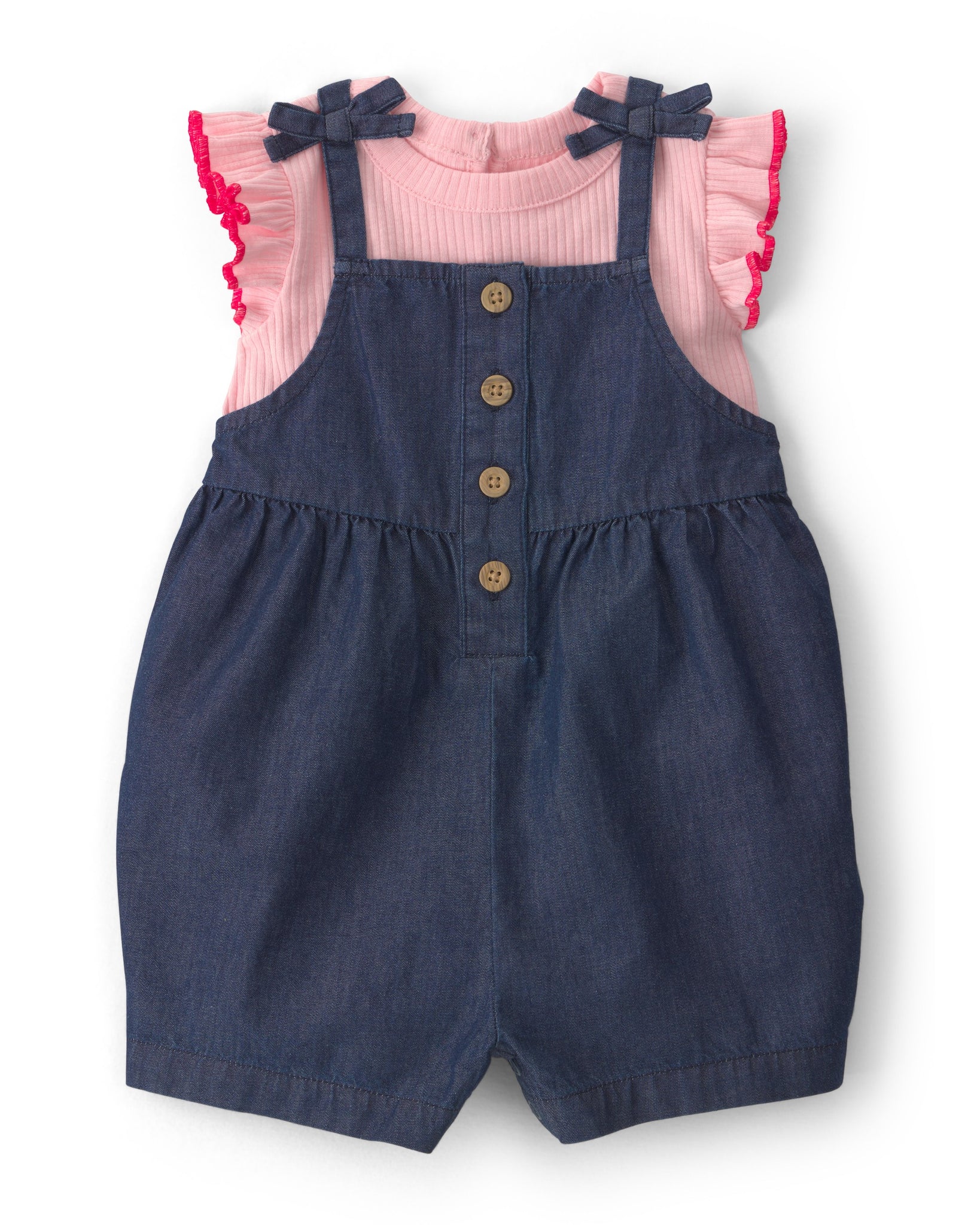 Brighten up your little one's wardrobe with this charming outfit that effortlessly combines style and comfort. The playful ruffle sleeves add a trendy touch; while the denim fabric ensures durability for all-day adventures. Parents will appreciate the easy button-front design that simplifies dressing; making mornings a breeze. Ideal for warm-weather outings; this versatile piece pairs beautifully with sandals or sneakers; ensuring your little one stays cool and stylish all season long. It's a favorite for good reason—comfort meets fashion in a way that makes every day feel special.