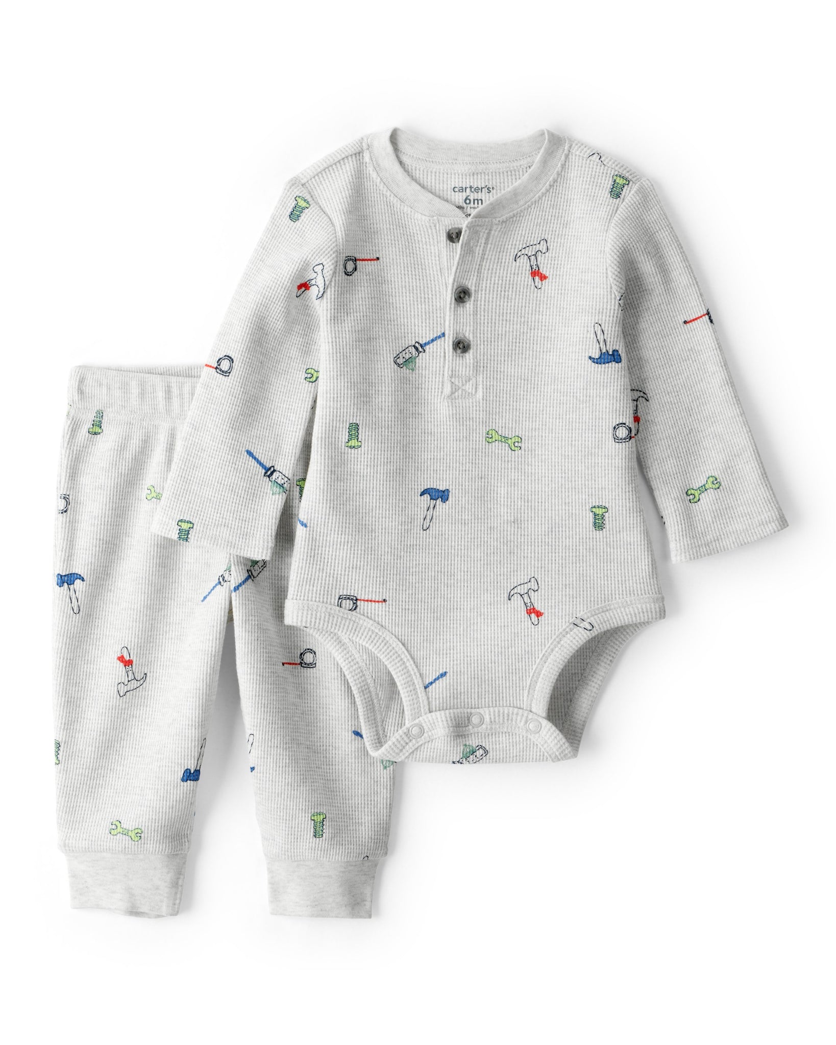 2-Piece Construction Thermal Bodysuit & Pant Set - Grey