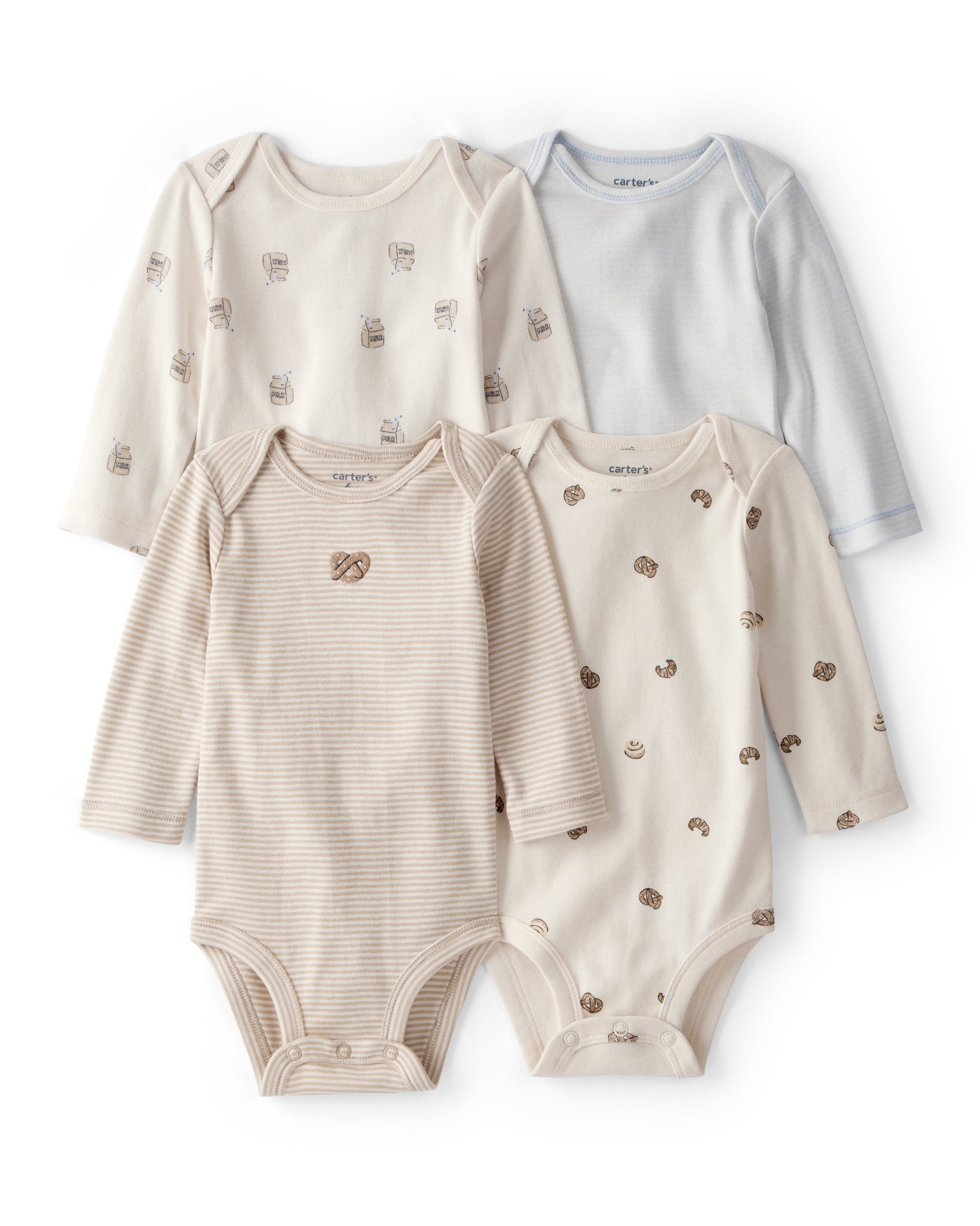 Whether it’s snack time or nap time; these bodysuits are built to handle it all. With a mix of soft stripes; sneakily sweet snack prints & easy snaps at the bottom; this 4-pack makes dressing less of a struggle and laundry day a little more bearable. A relaxed fit means more wiggle room for little bellies and big moves; and playful embroidery gives these basics a touch of fun. Ideal for real life; from couch cuddles to stroller strolls.
