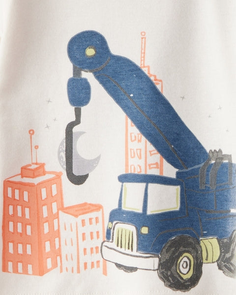 Construction Print 100% Cotton Long-Sleeve 4-Piece Pajamas - Blue/White/Navy