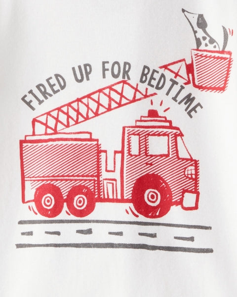 Firetruck Print 100% Cotton Long-Sleeve 4-Piece Pajamas - Red/White