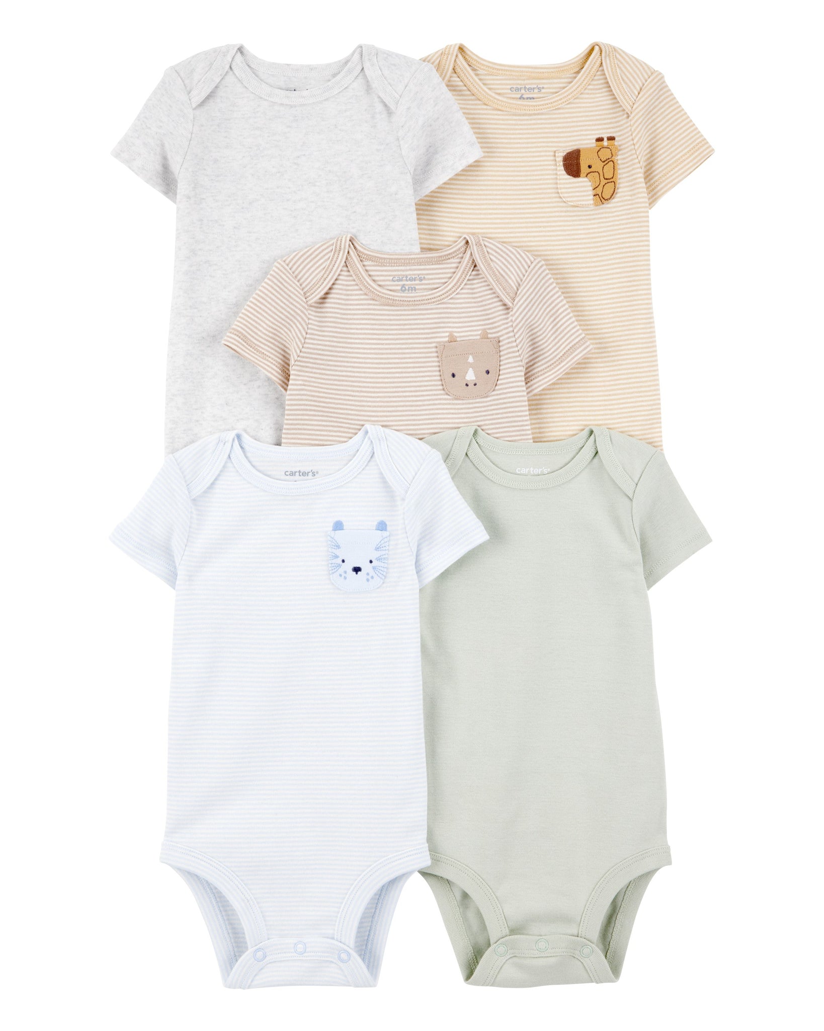 Stock up and save on all of babys favorites. Your sweet one will have a diaper bag full of these colorful bodysuits; complete with overlap shoulders for easy over the head and strong snaps at the legs for easy changes.