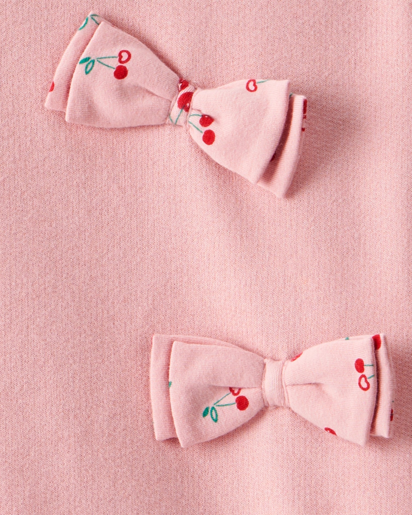 Elevate your little one's casual wardrobe with this delightful sweatshirt top and pant set, designed for comfort and style. The soft pink top features tacked on bows, adding a playful touch, while the relaxed fit ensures all-day comfort for active play. Paired with snug leggings adorned with a sweet cherry print, this outfit brings a burst of joy to any day. Perfect for playdates or lounging at home, this set combines trendy fashion with easy dressing, making it a favorite for both kids and parents alike. Embrace the season with this cheerful ensemble that celebrates fun and freedom.