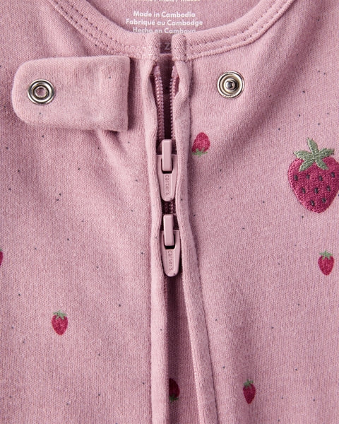Strawberry Print 100% Cotton Sleep & Play - Pink