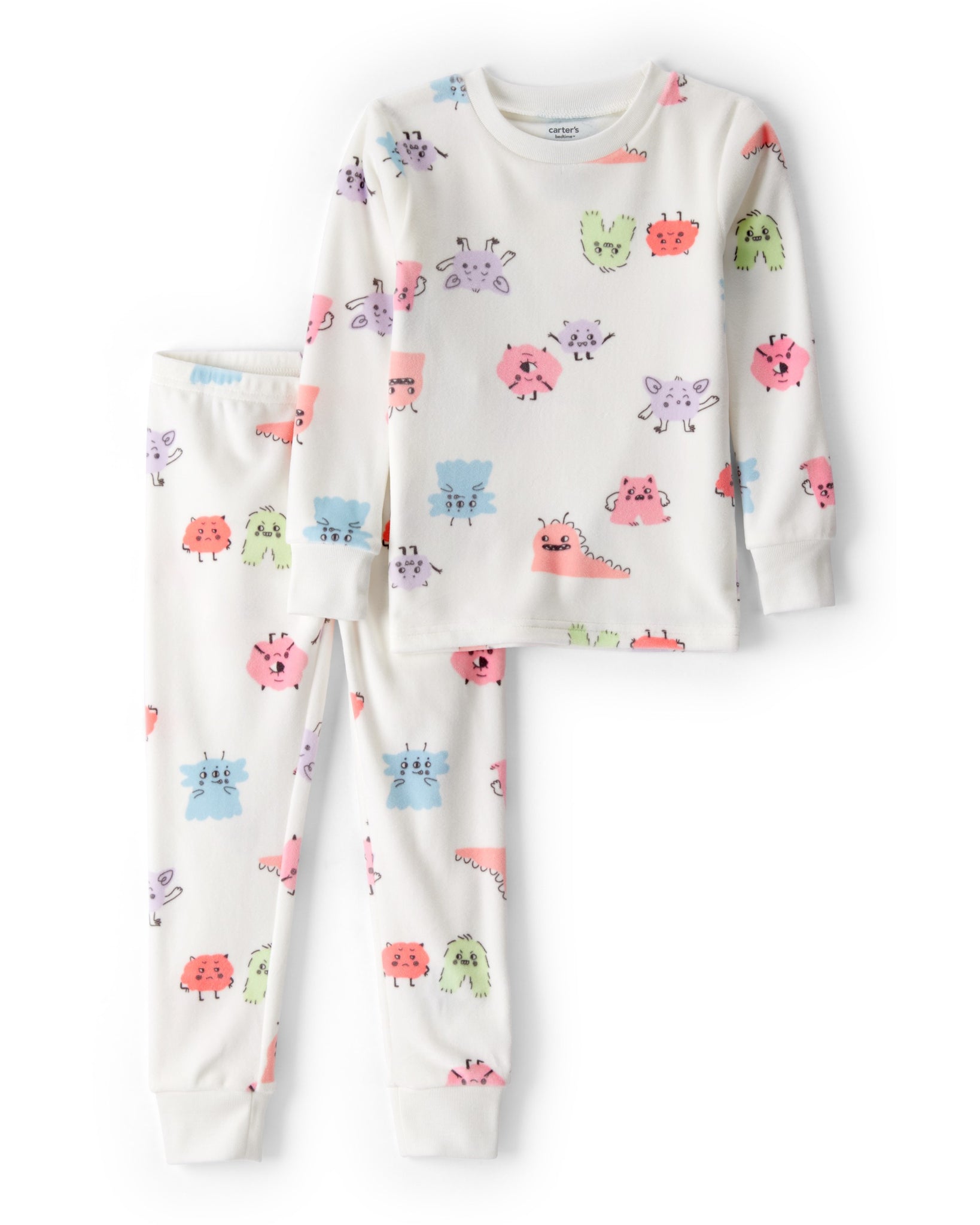Monster DreamPlush Long-Sleeve Snug Fit 2-Piece Pajamas - Ivory