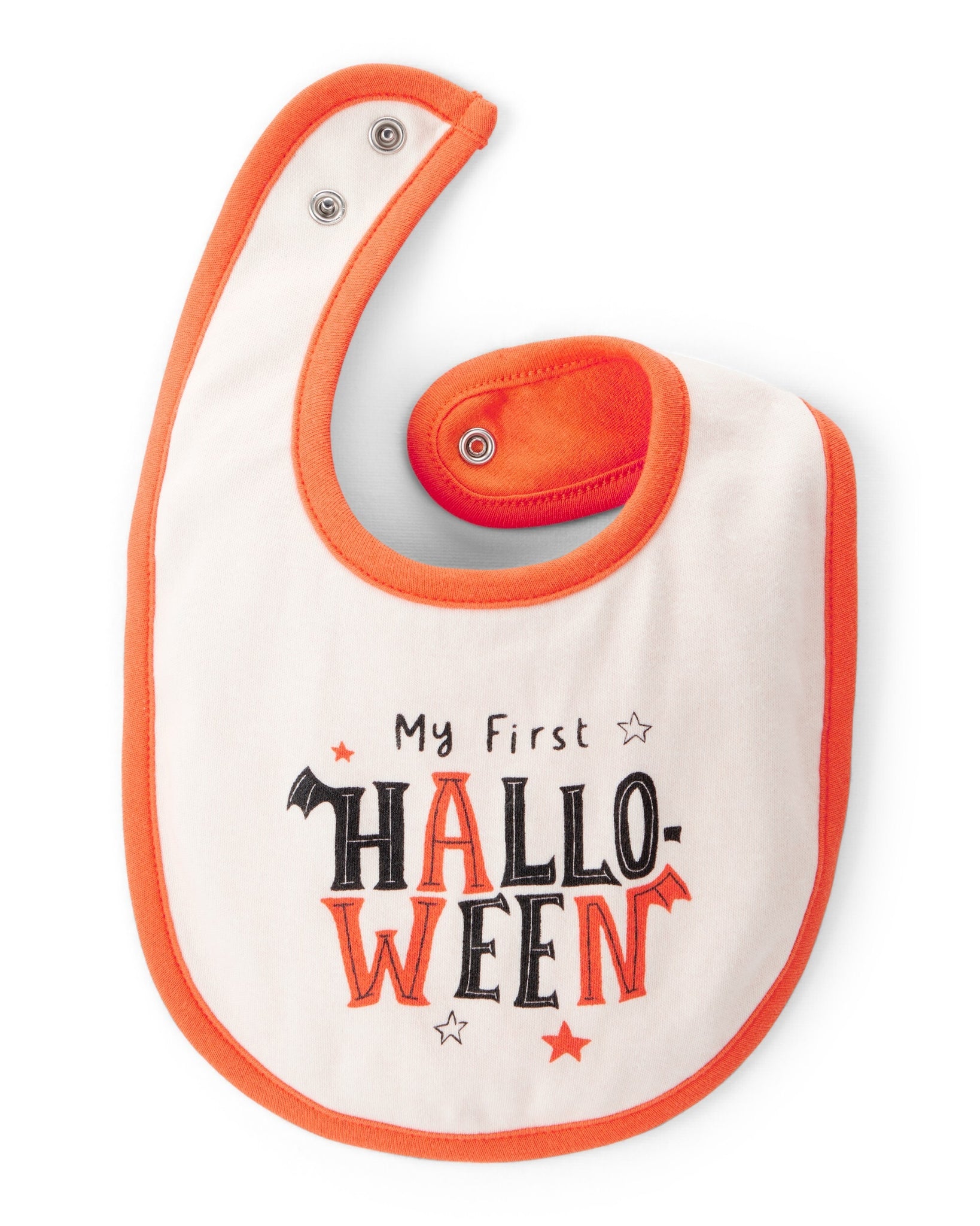 Add festive charm to your baby’s Halloween outfit with this teething bib; featuring ribbed trim and an easy snap closure for a secure fit. Crafted from super soft cotton; it ensures comfort while keeping your little one dry during teething moments.
