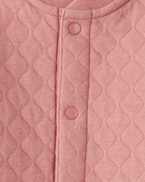 Built like a cozy sweatshirt but made for full-body comfort; this quilted 1-piece is the shortcut to staying warm without wrestling a dozen layers. The ribbed collar adds a touch of cool; while the soft quilting wraps babies in comfort from head (oka