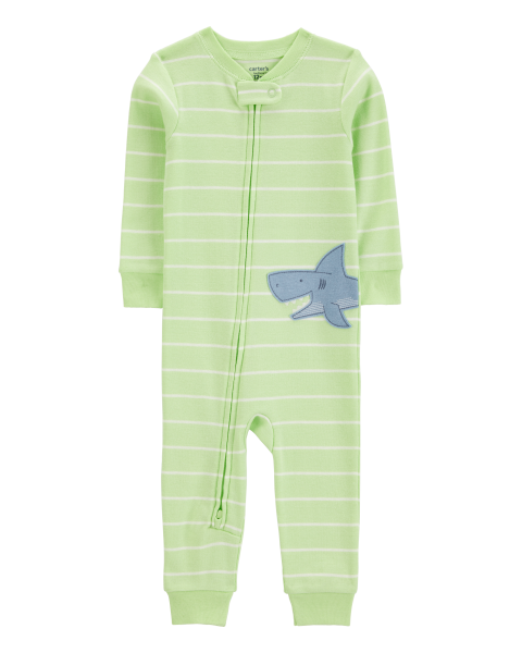 Crafted in soft cotton with allover stripes; this 1-piece gets your little one ready for bed in one easy zip! Carters cotton PJs are not flame resistant. But dont worry! Theyre designed with a snug and stretchy fit for safety and comfort.